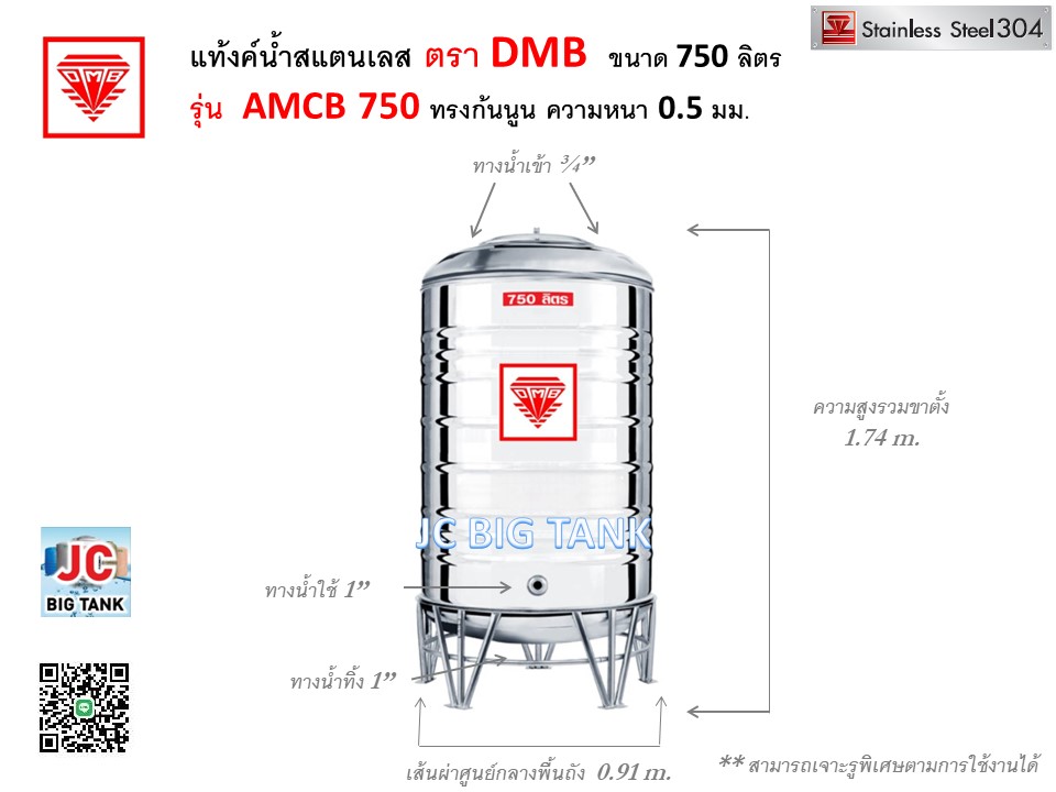 หมวดหมู่ | แท้งค์น้ำ สแตนเลส ตราDMB (รุ่นพื้นนูน) รหัส AMCB |