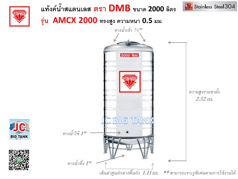 ขนาดแท้งค์น้ำสแตนเลส ตรา DMB รุ่น AMCX ทรงสูง