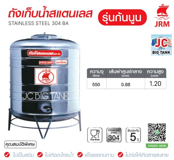 แท้งค์น้ำ สแตนเลส ตราเรือใบ JRM