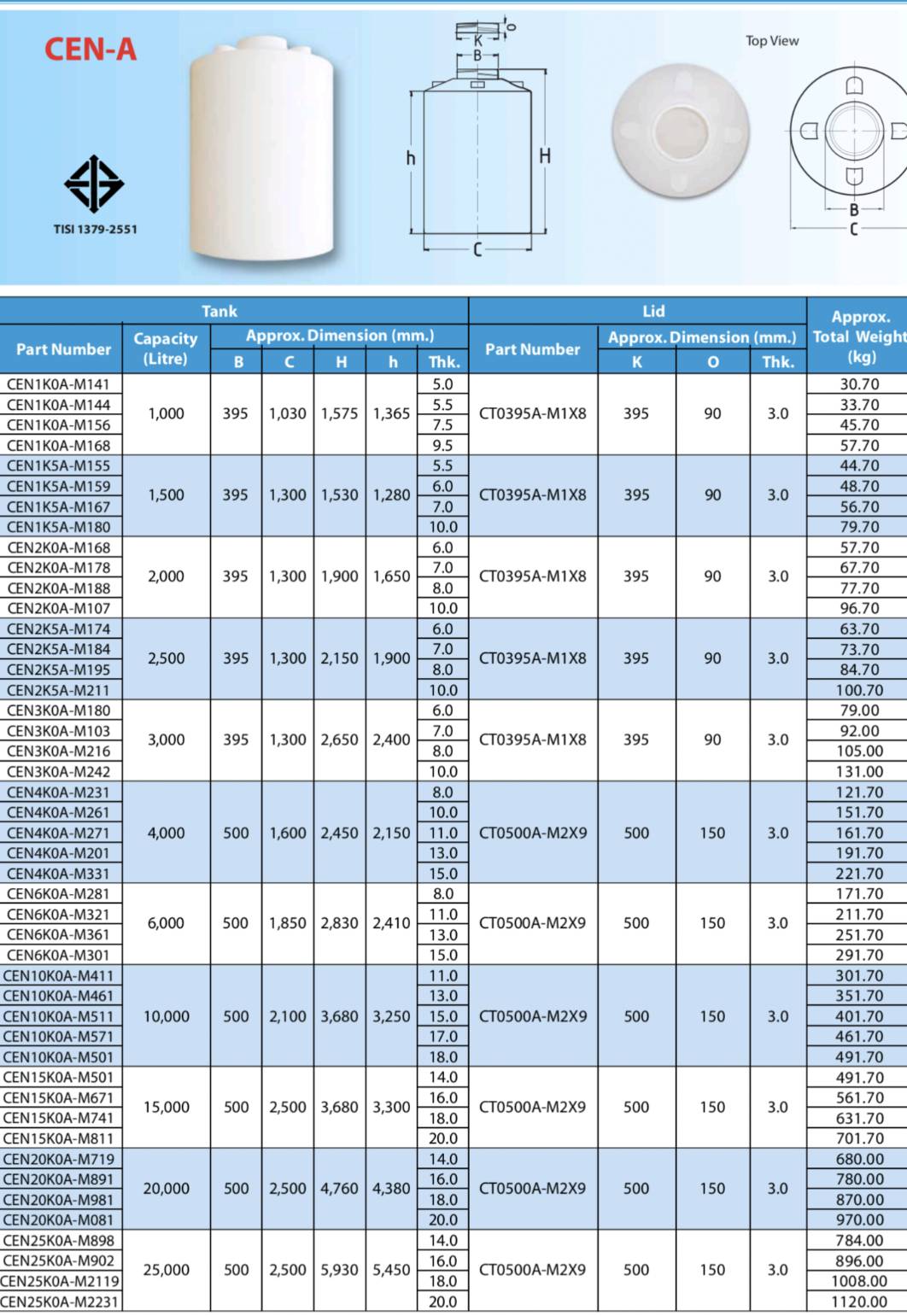 ถังเก็บน้ำ TEMA รุ่น CEN-A ผลิตจากวัตถุดิบ LLDPE,HDPE ได้รับมาตรฐาน TIS 1379-2551