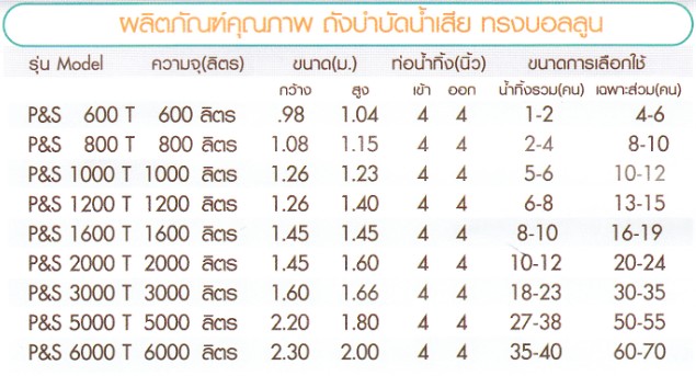 รหัสสินค้า ถังบำบัด P&S ทรงบอลลูน